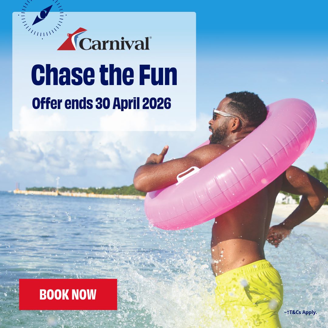 *Fares are cruise only, per person (‘PP’) in AUD, in complete twin rooms as specified, based on lead categories available at time of publication, inclusive of discounts. Valid for new bookings only. Not combinable with other offers. Supplements apply for higher room grades, categories and fare types. Some rooms have obstructed views. Offer ends 30-04-2026 unless sold out prior. Offer is available on select Carnival sailings from Australia through July 2028. Advertised fares are available until allocation is exhausted and may fluctuate. Offer available on KEH, which Includes the cruise fare packaged with a reduced deposit and 2-category upgrade. ~Reduced deposit per person: pay (non-refundable) deposit per person to secure booking. 2-5 day sailings: $50PP, 6+ day sailings: $99PP. Remainder of the standard deposit and final payment for all guests is due on final payment due date. Offer is not valid for bookings made within the final payment period. †Room location upgrade offer: available on select sailings, ships and rooms. The higher-grade room must be booked at the time of booking to secure the upgrade. Subject to availability. Available on like-to-like categories only (interior to interior, ocean view to ocean view and balcony to balcony). Based on the price difference between 2 room grades within the same category. Fares shown are inclusive of the upgrade. Offer excludes upper/lower and obstructed categories. All travel is subject to the Carnival Cruise Line Contract at https://www.carnival.com.au/about-carnival/legal-notice/ticket-contract which guests are bound by. Cruise itineraries and onboard offerings are not guaranteed. Charges may apply for some activities, venues and menu items. Credit card surcharges (Visa/Mastercard 1.1%; AMEX 2.75%). ©Carnival Cruise Line. Carnival plc t/as Carnival Cruise Line. ABN 23 107 998 443. Rate code: KEH.